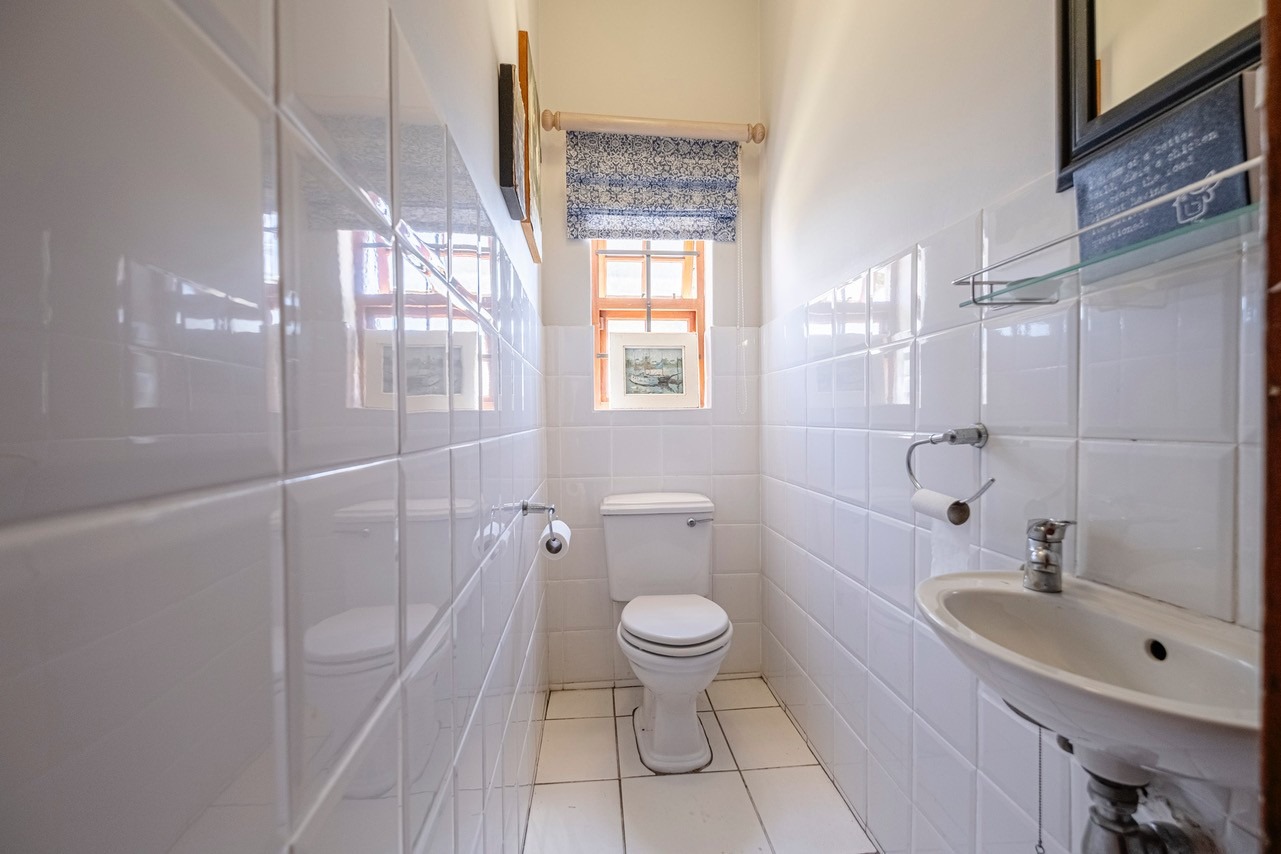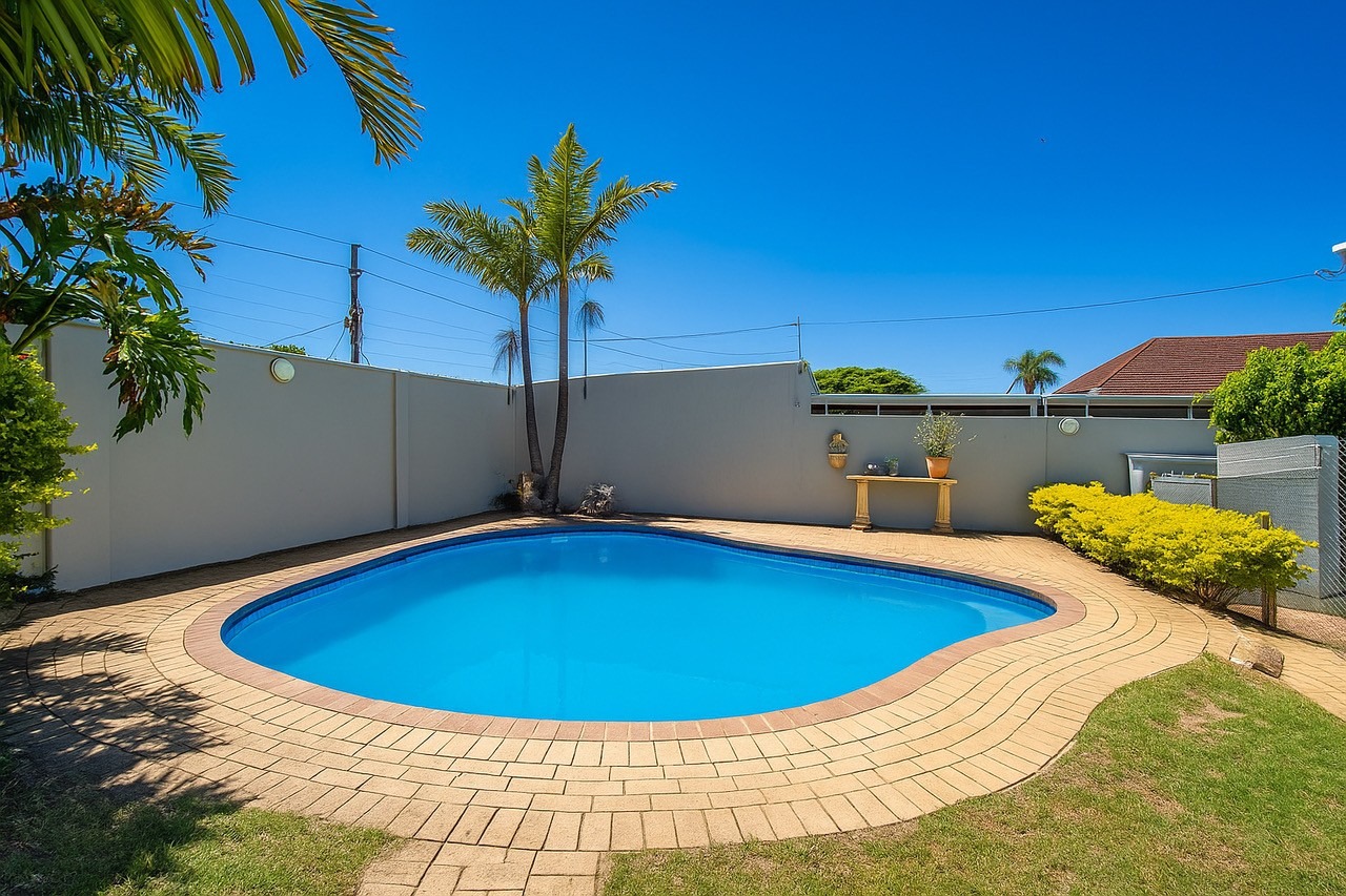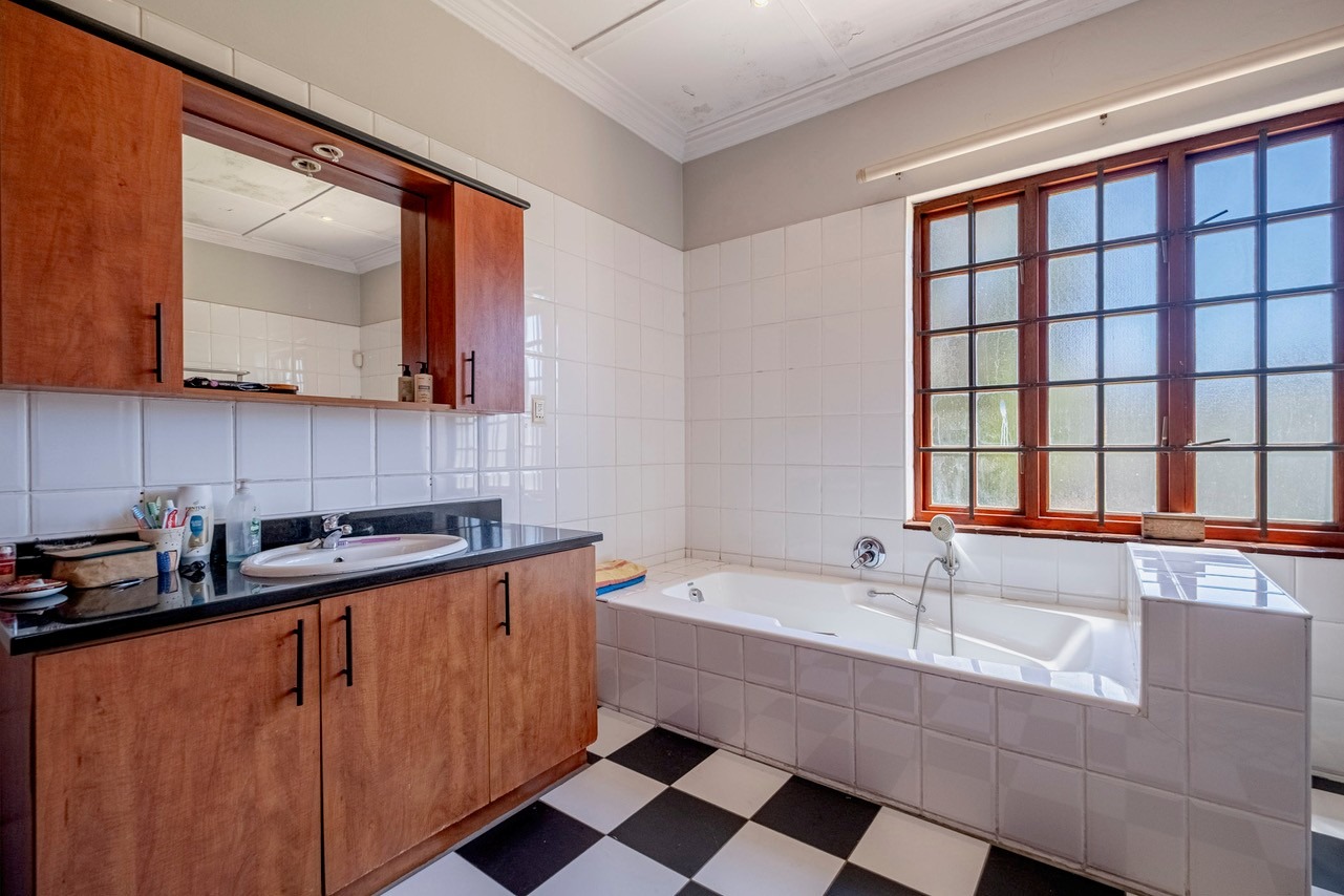 The home features a single garage and an additional flatlet at the rear, perfect for guests or domestic accommodation. Step outside to enjoy a sparkling swimming pool and expansive, lush gardens, offering ample space for relaxation and outdoor activities.