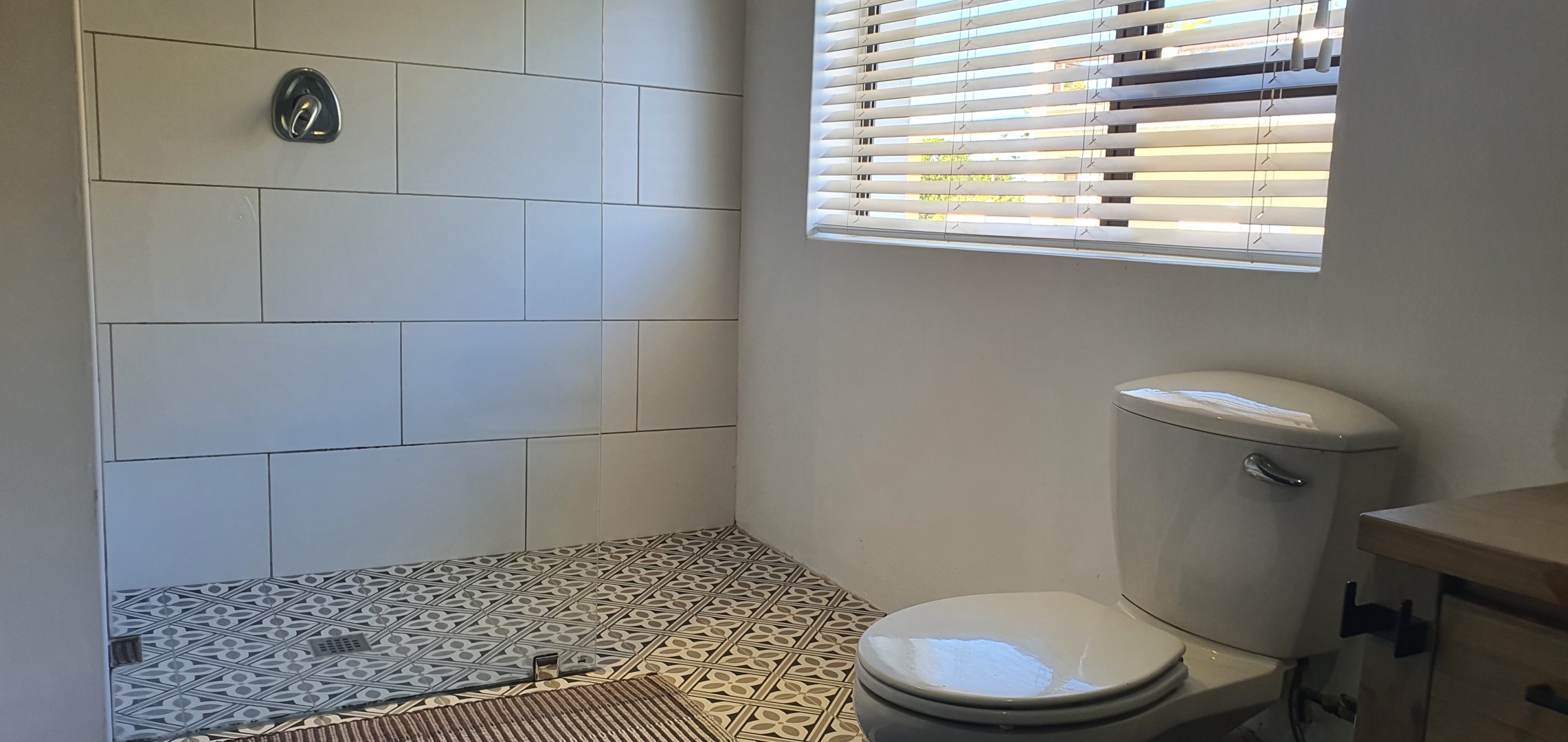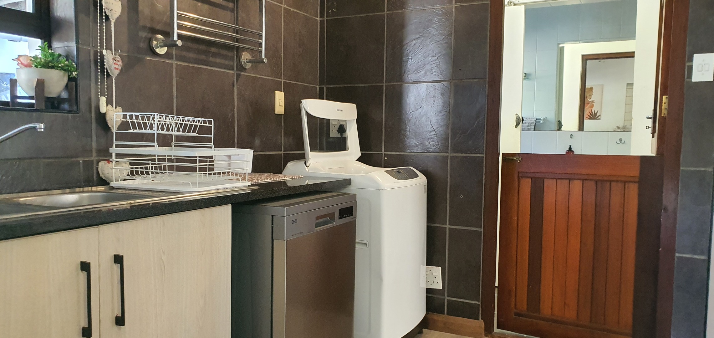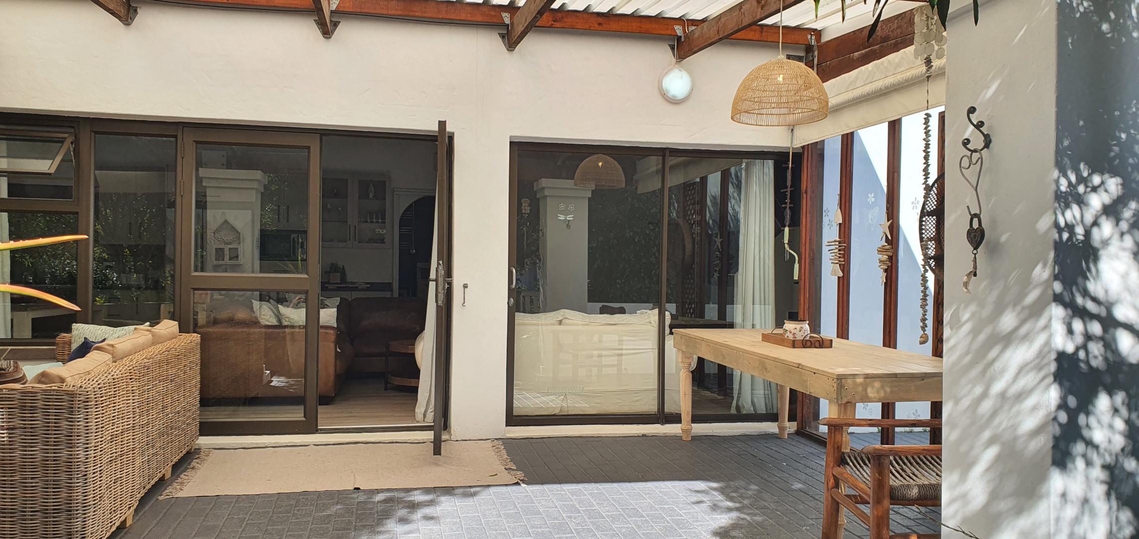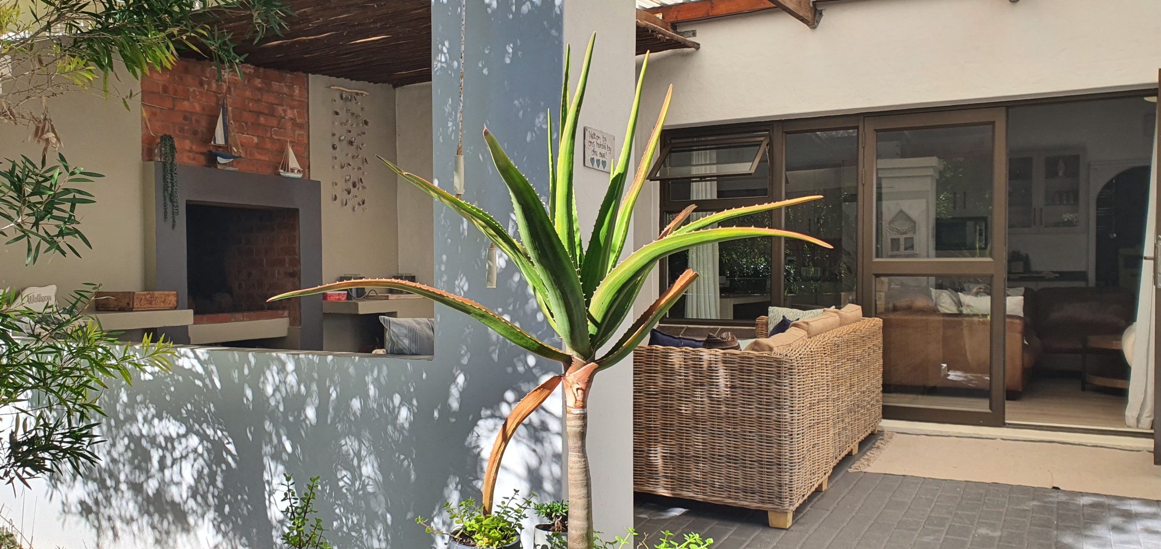 Spacious open-plan lounge, dining area, and kitchen with built-in braai