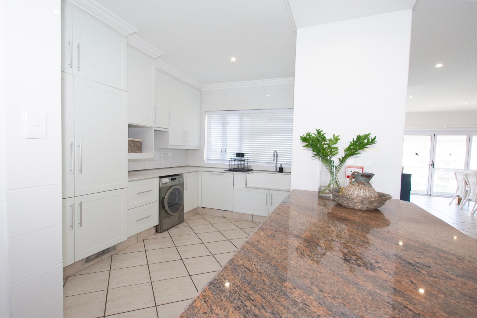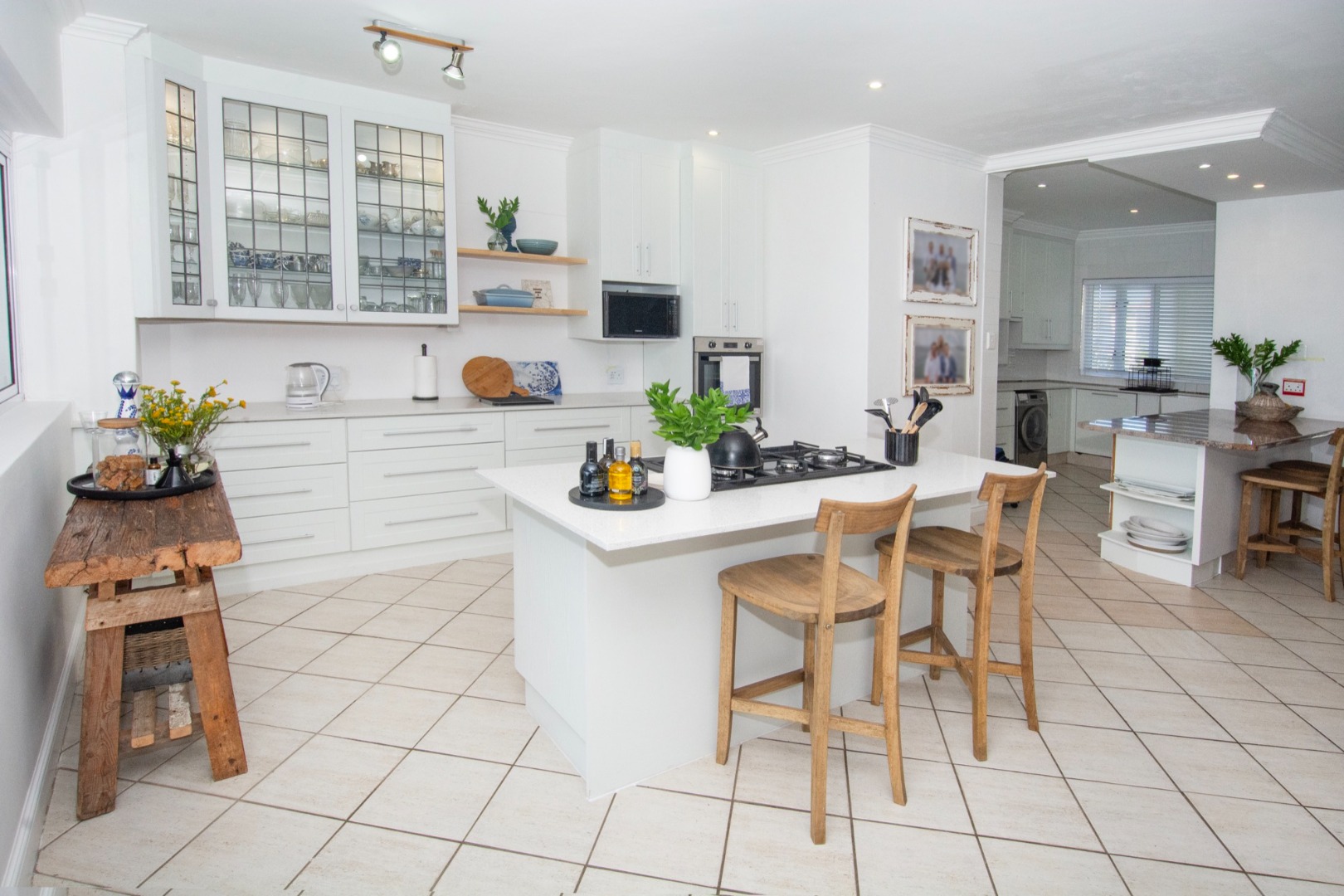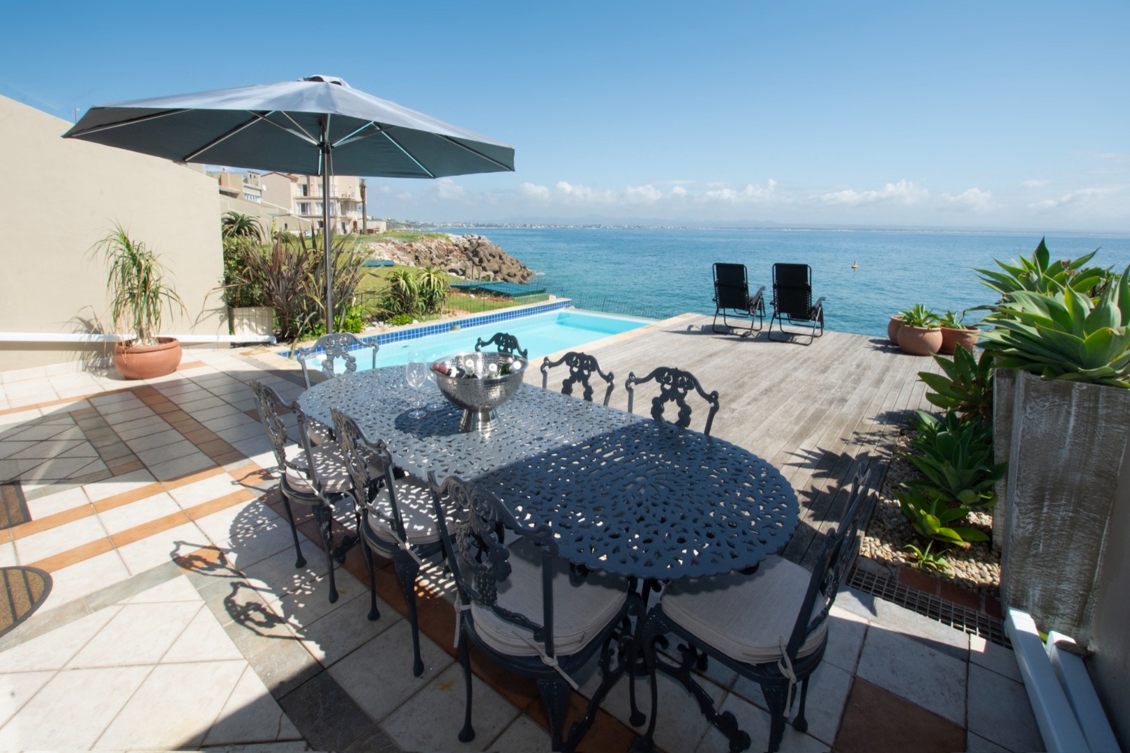 Level 2: A true entertainer’s haven, with an open-plan lounge and fireplace, designer kitchen, dining space, pantry, guest bathroom, and built-in braai. Slide open the glass doors to reveal the pool and terrace — where ocean breezes set the scene.