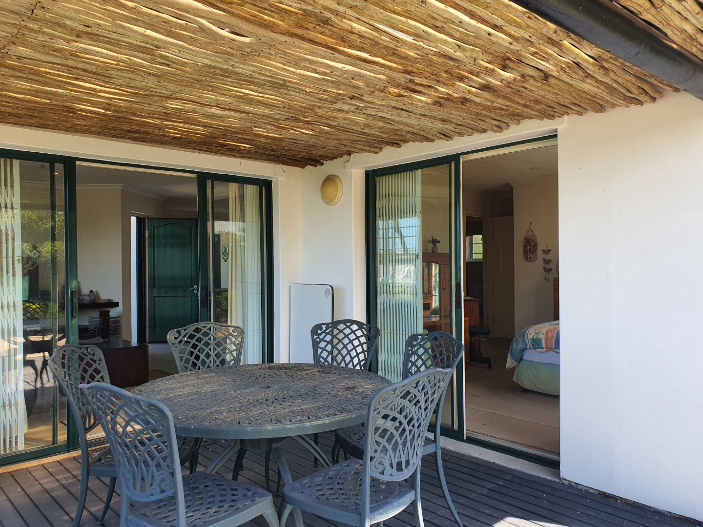 The main en-suite bedroom boasts a generous dressing area with a sliding door that opens out to an undercover patio, with drop dead gorgeous sea views