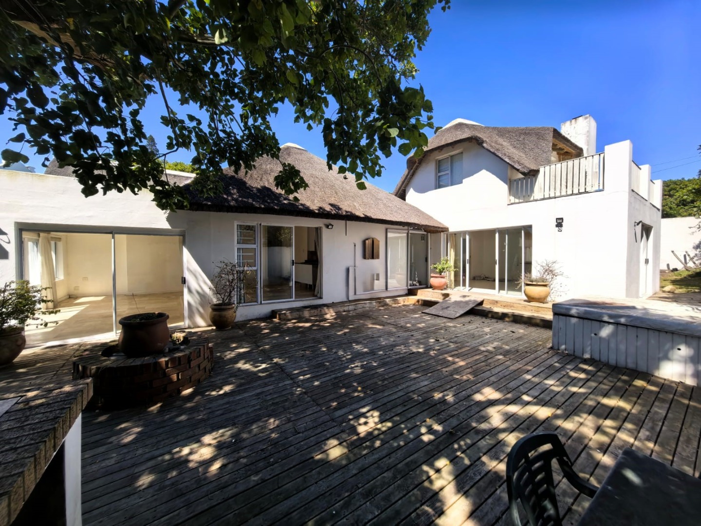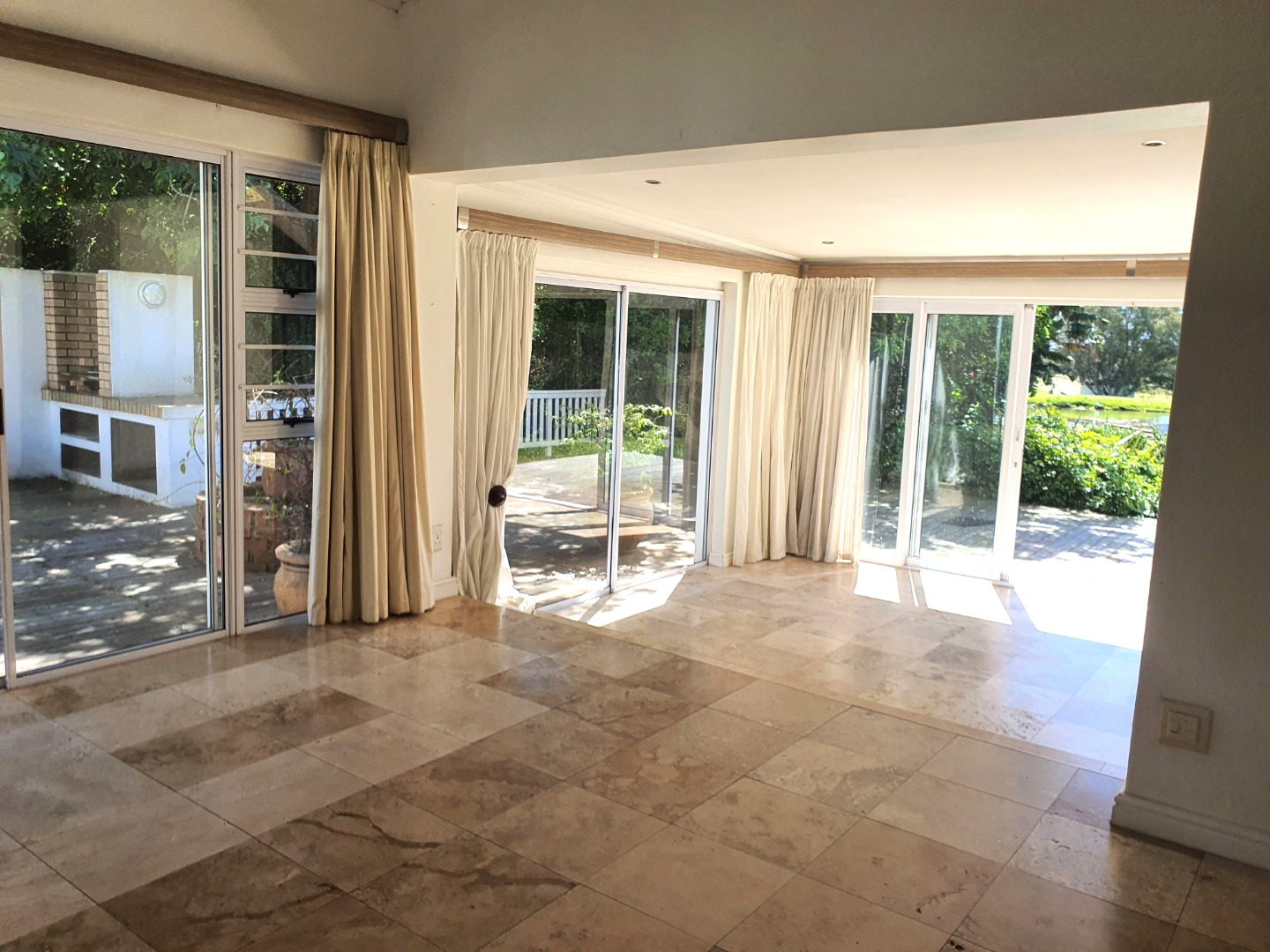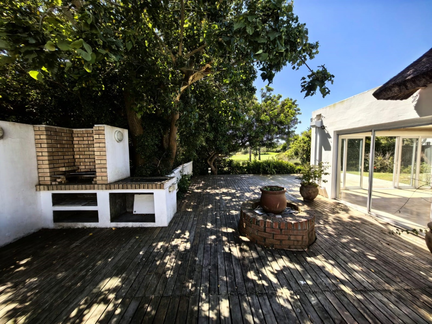 - Separate entertainment lounge with a built-in braai complete with its own guest toilet leads out onto a large deck area surrounded by an established garden and the stunning view