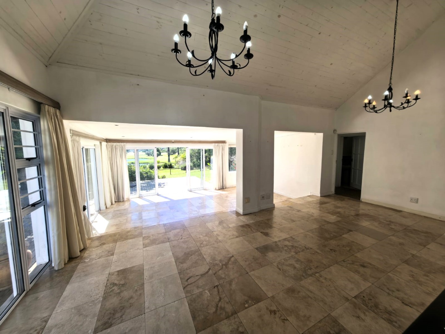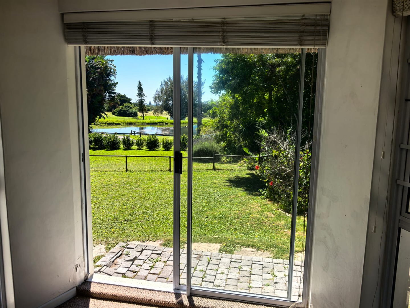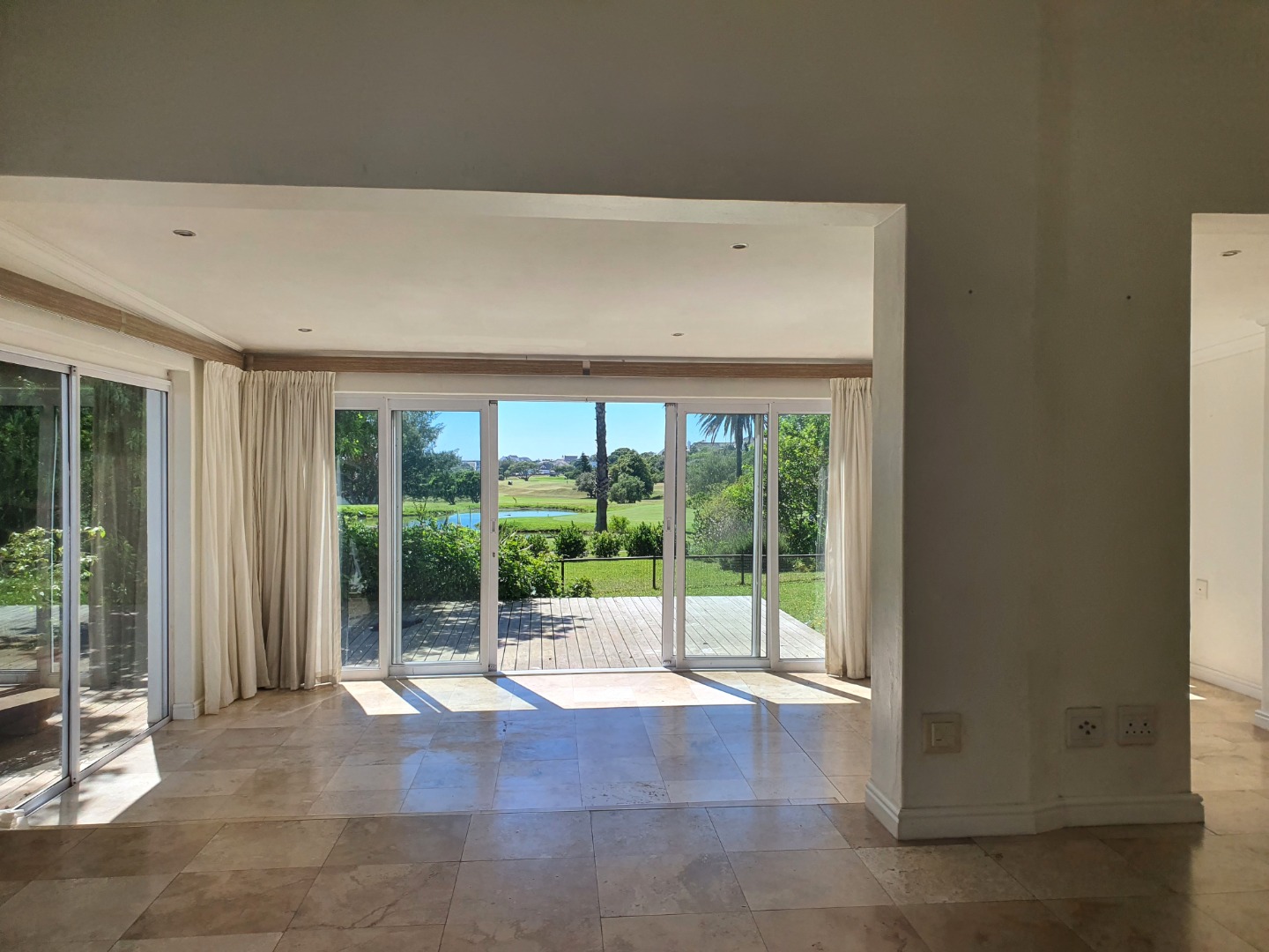 - Open-plan living area with sliding doors, overlooking the golf course and dam
