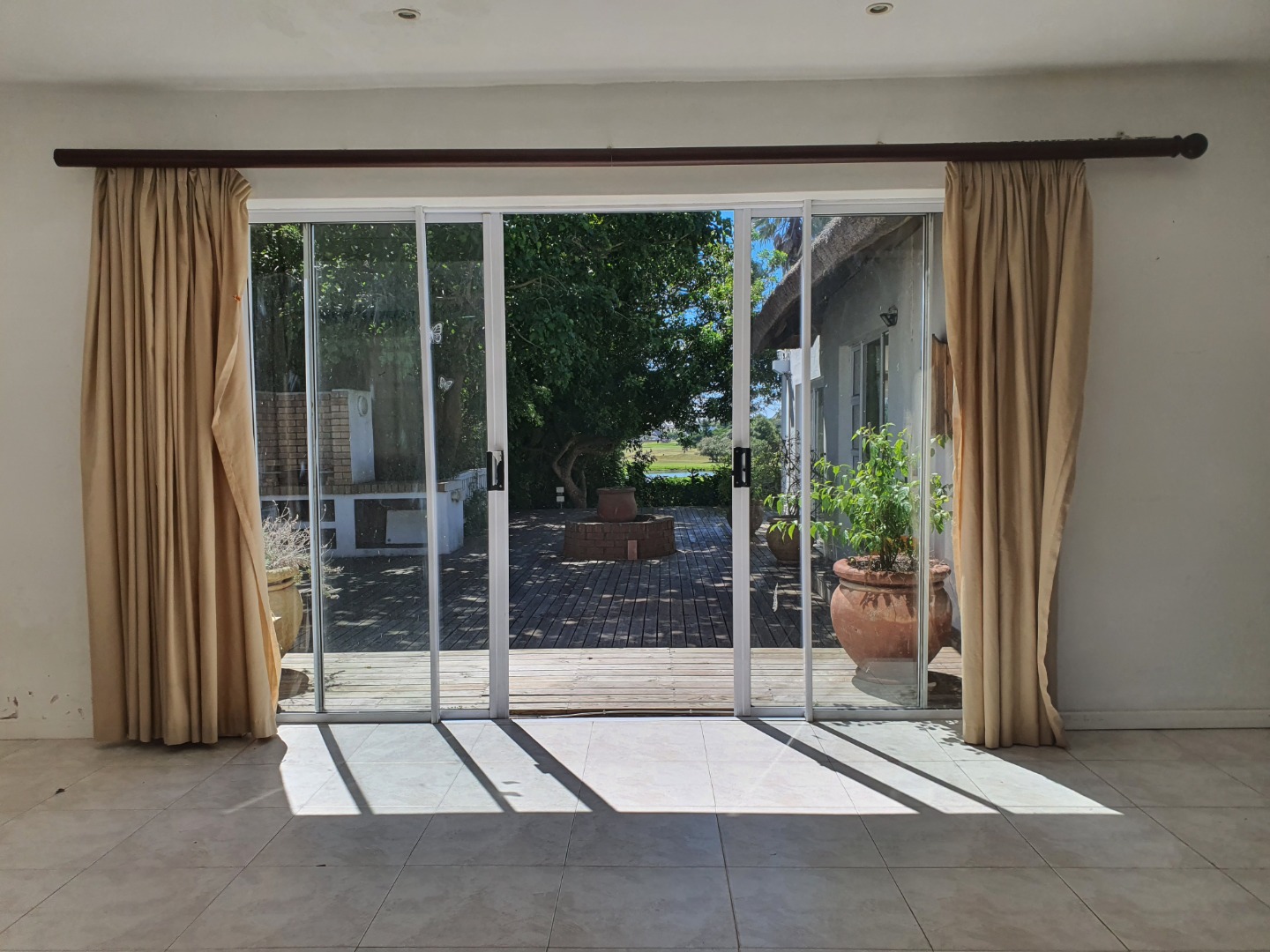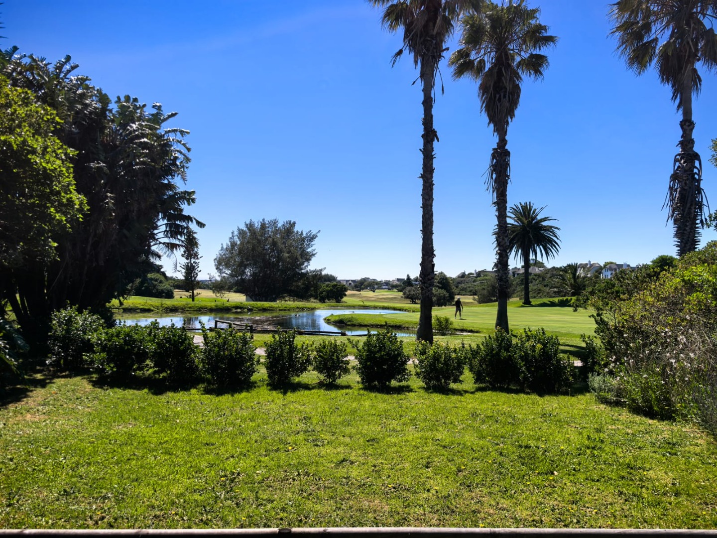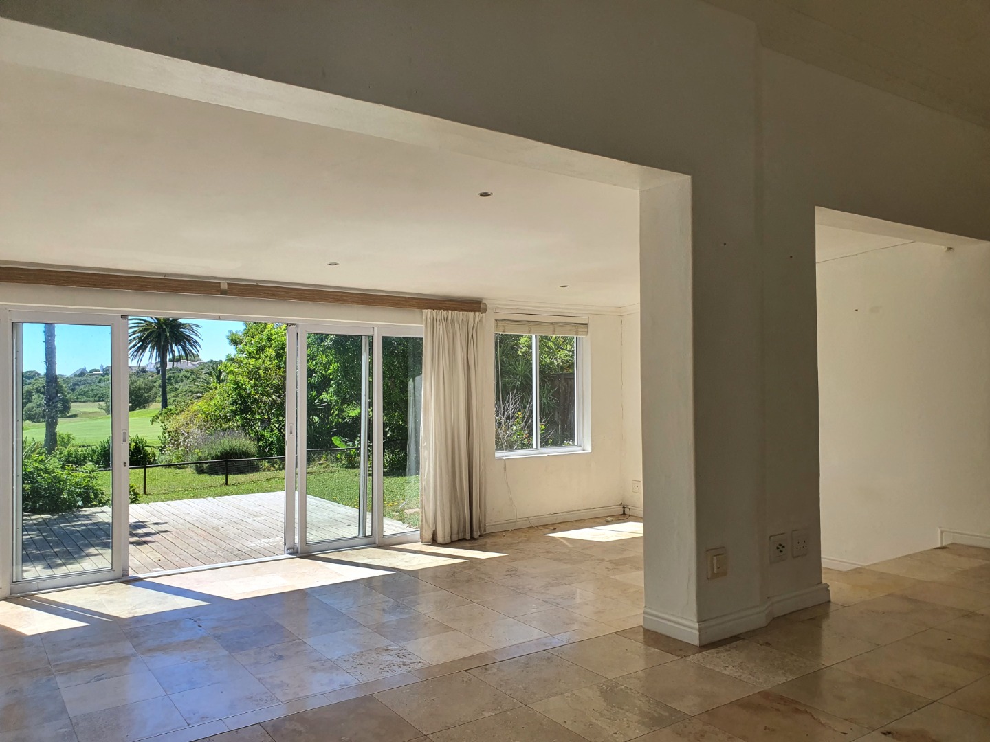 - Open-plan living area with sliding doors, overlooking the golf course and dam