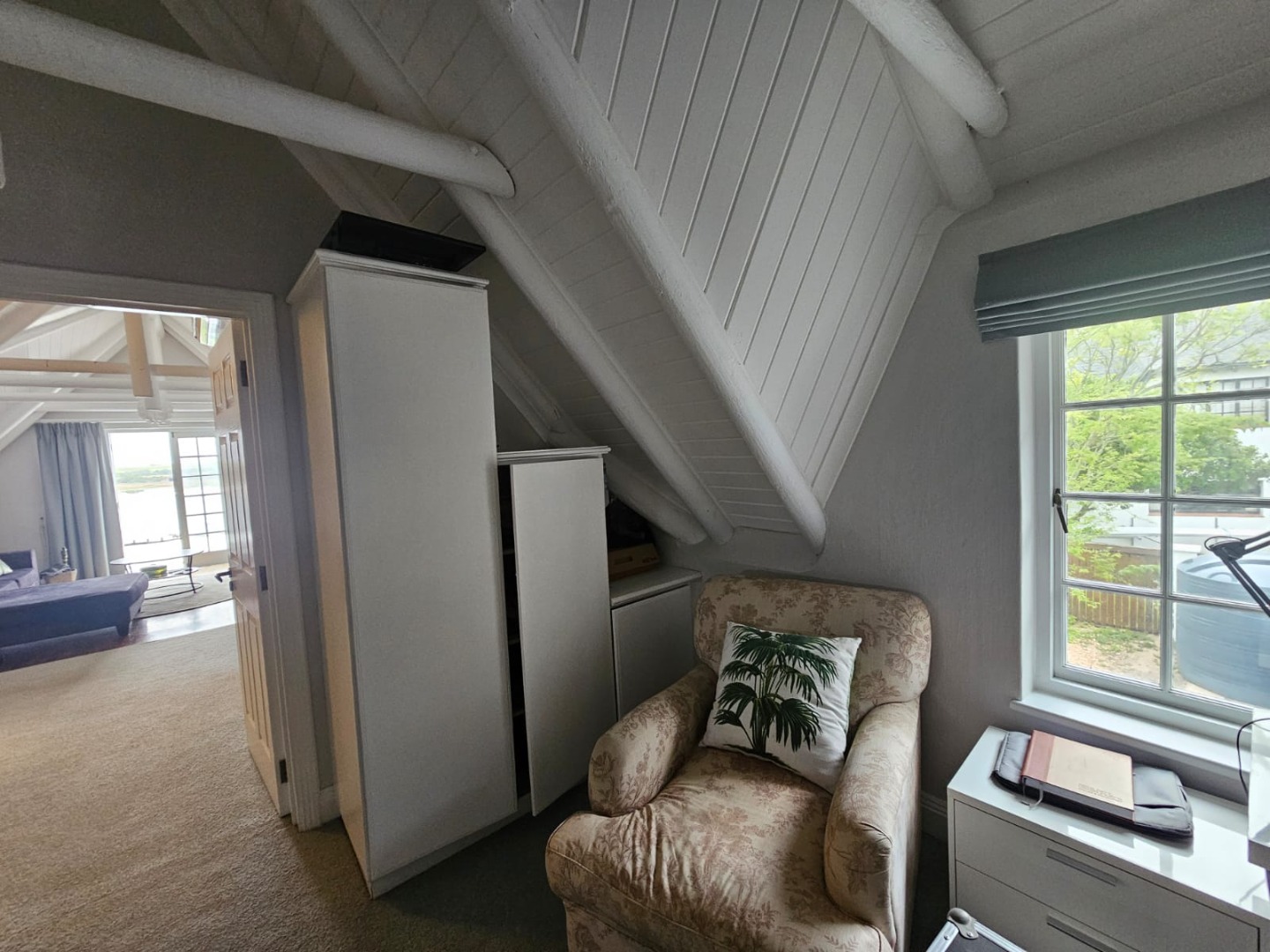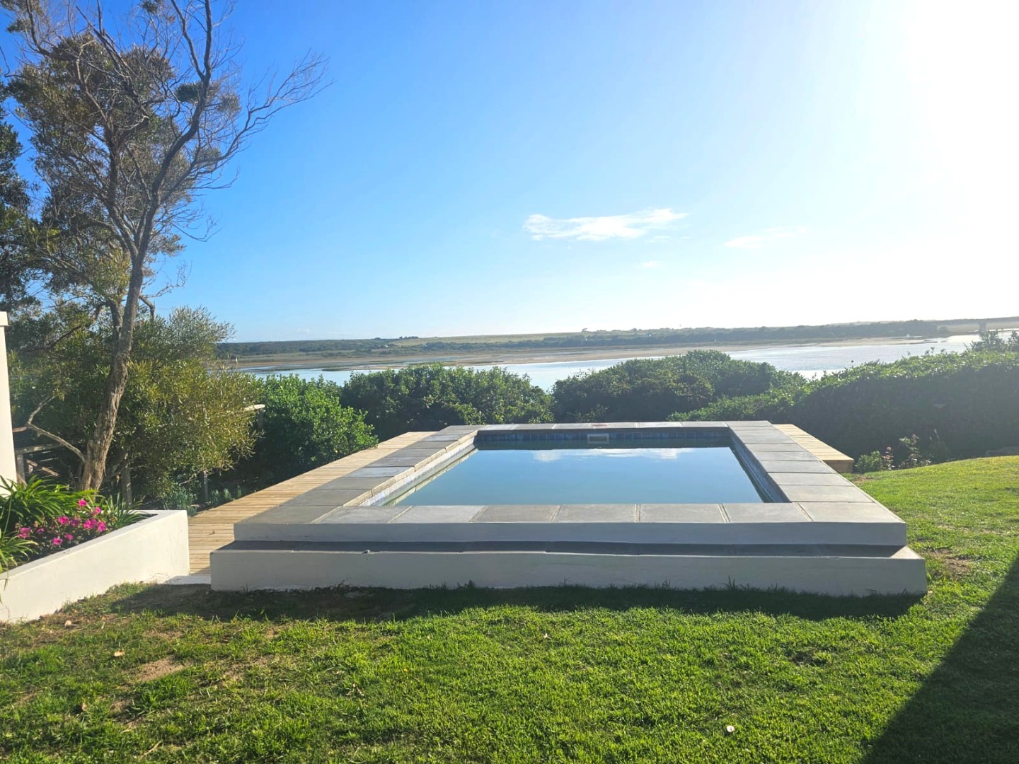 Three bedroom, two bathroom on the first floor. Downstairs, open plan lounge and kitchen with separate scullery. Guest toilet, dining room that opens out onto a entertainment area with built in braai. Enjoy the summer evenings outdoors with a outdoor braai and pool, with only few steps to your own jetty to have a sunset cruise with your boat on the lovely river.