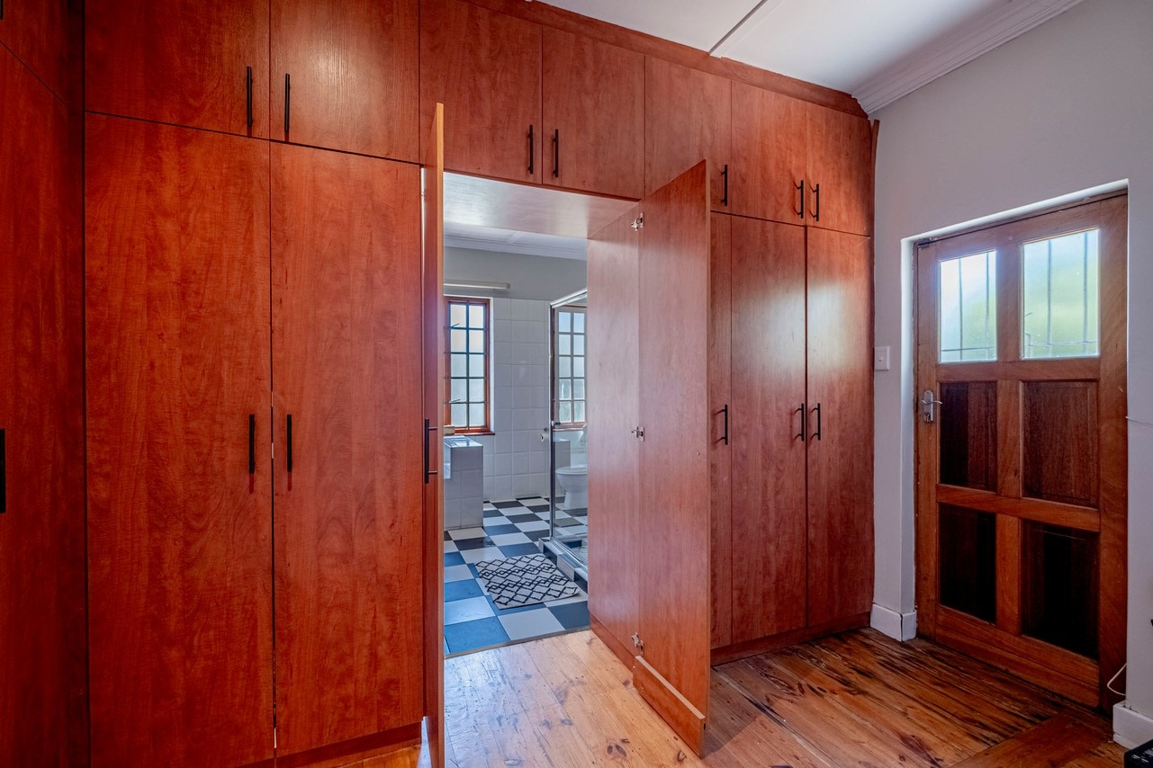 The home features a single garage and an additional flatlet at the rear, perfect for guests or domestic accommodation. Step outside to enjoy a sparkling swimming pool and expansive, lush gardens, offering ample space for relaxation and outdoor activities.