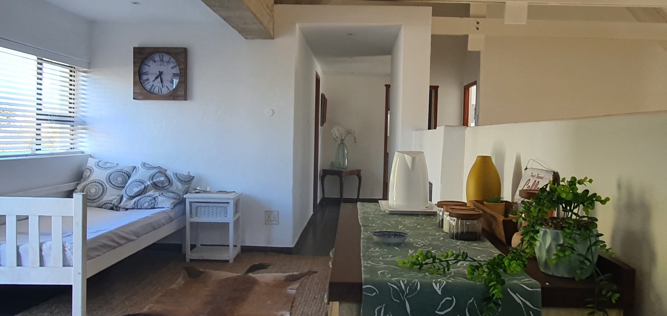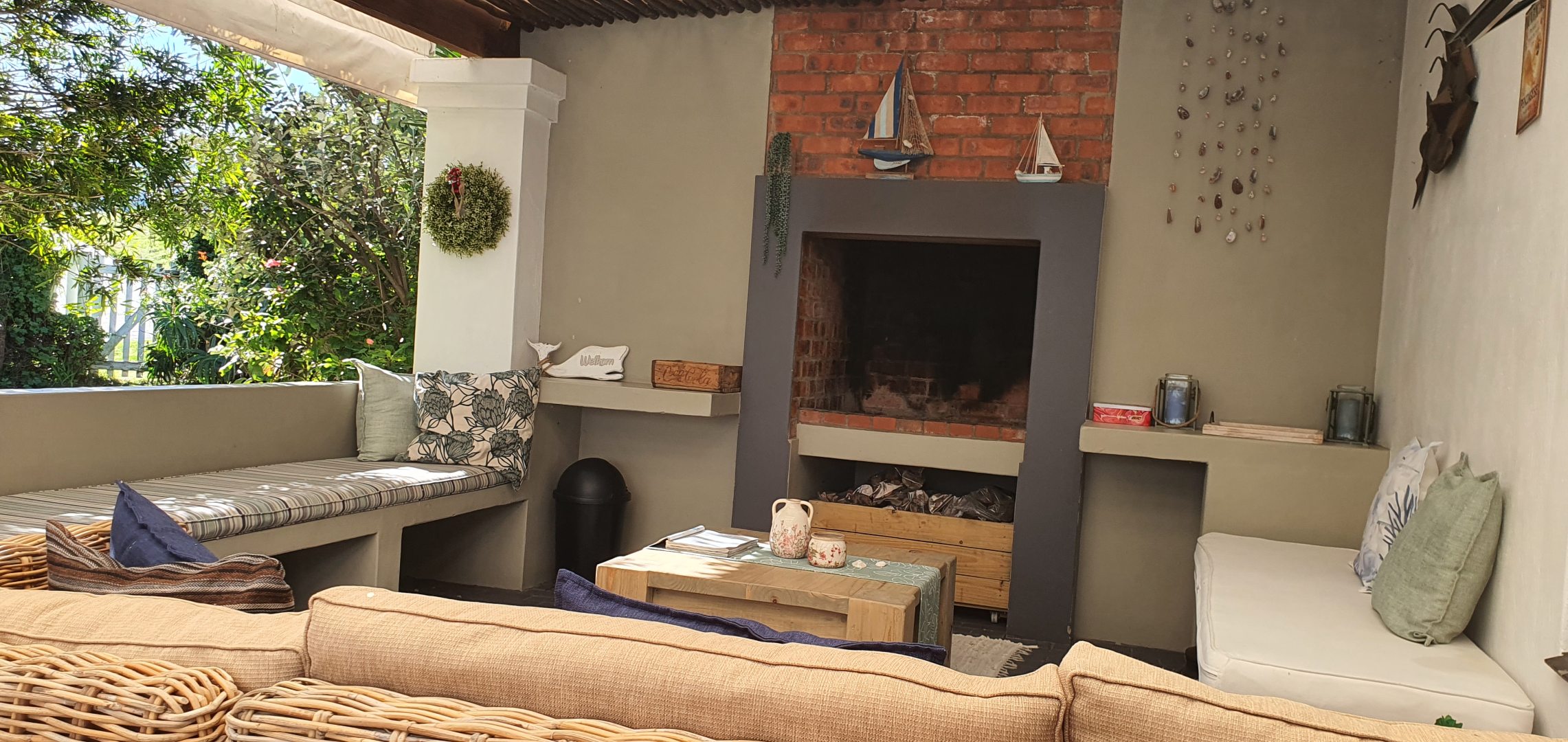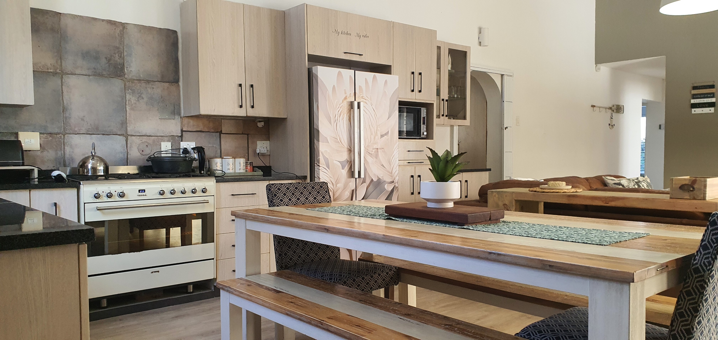 Spacious open-plan lounge, dining area, and kitchen with built-in braai