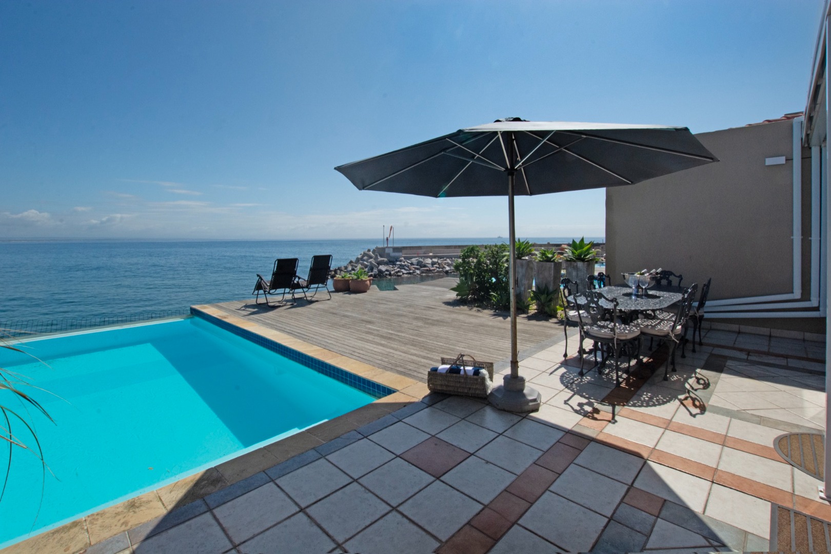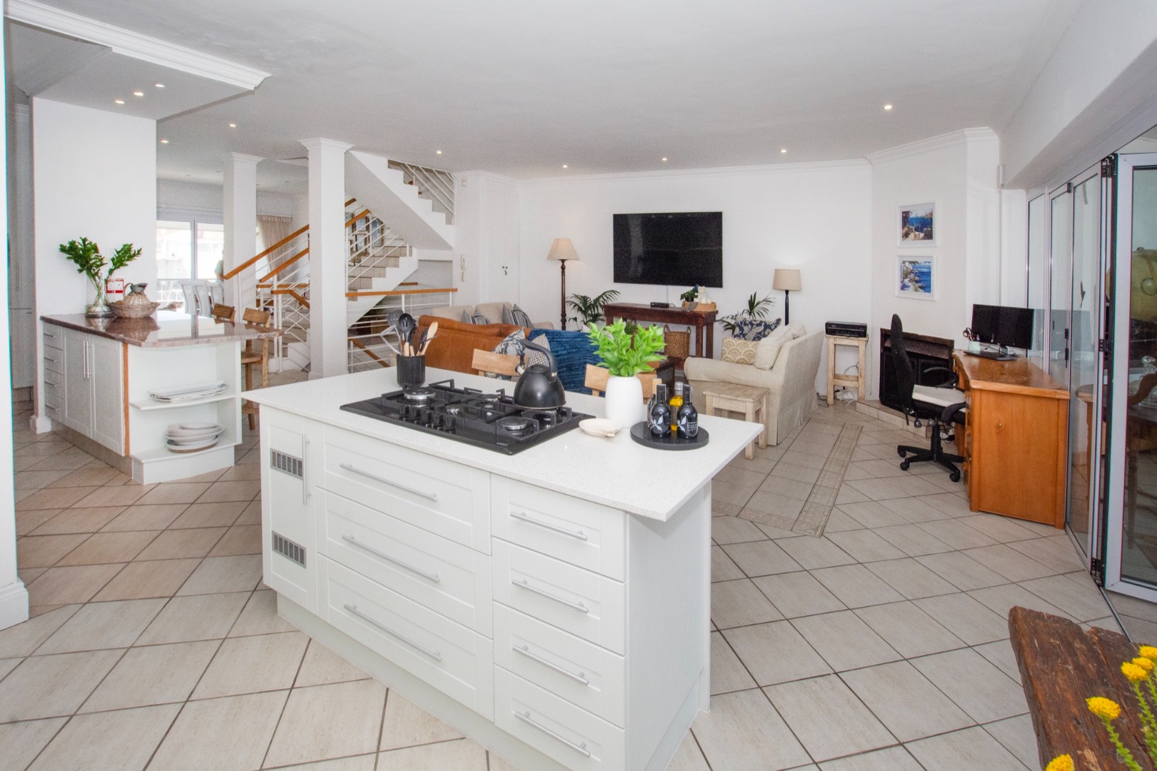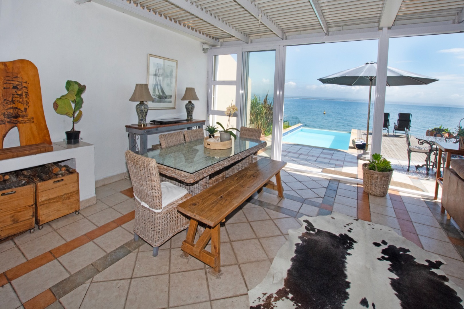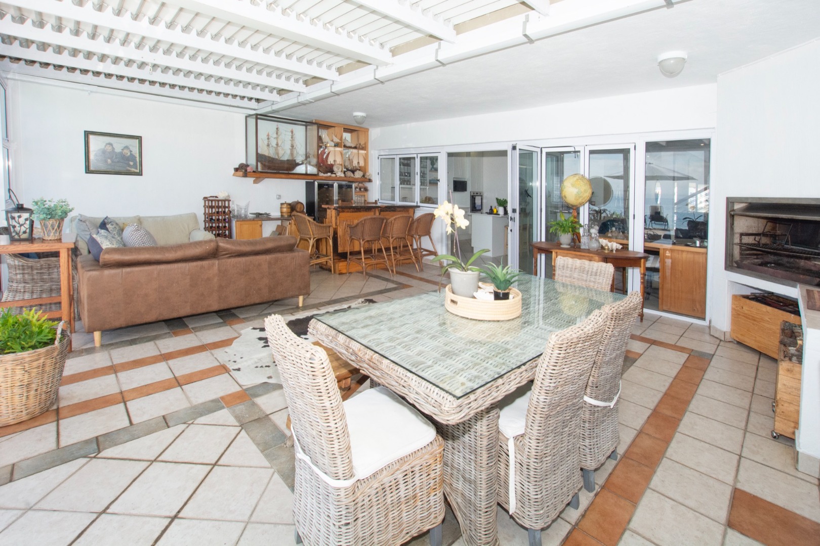Level 2: A true entertainer’s haven, with an open-plan lounge and fireplace, designer kitchen, dining space, pantry, guest bathroom, and built-in braai. Slide open the glass doors to reveal the pool and terrace — where ocean breezes set the scene.
