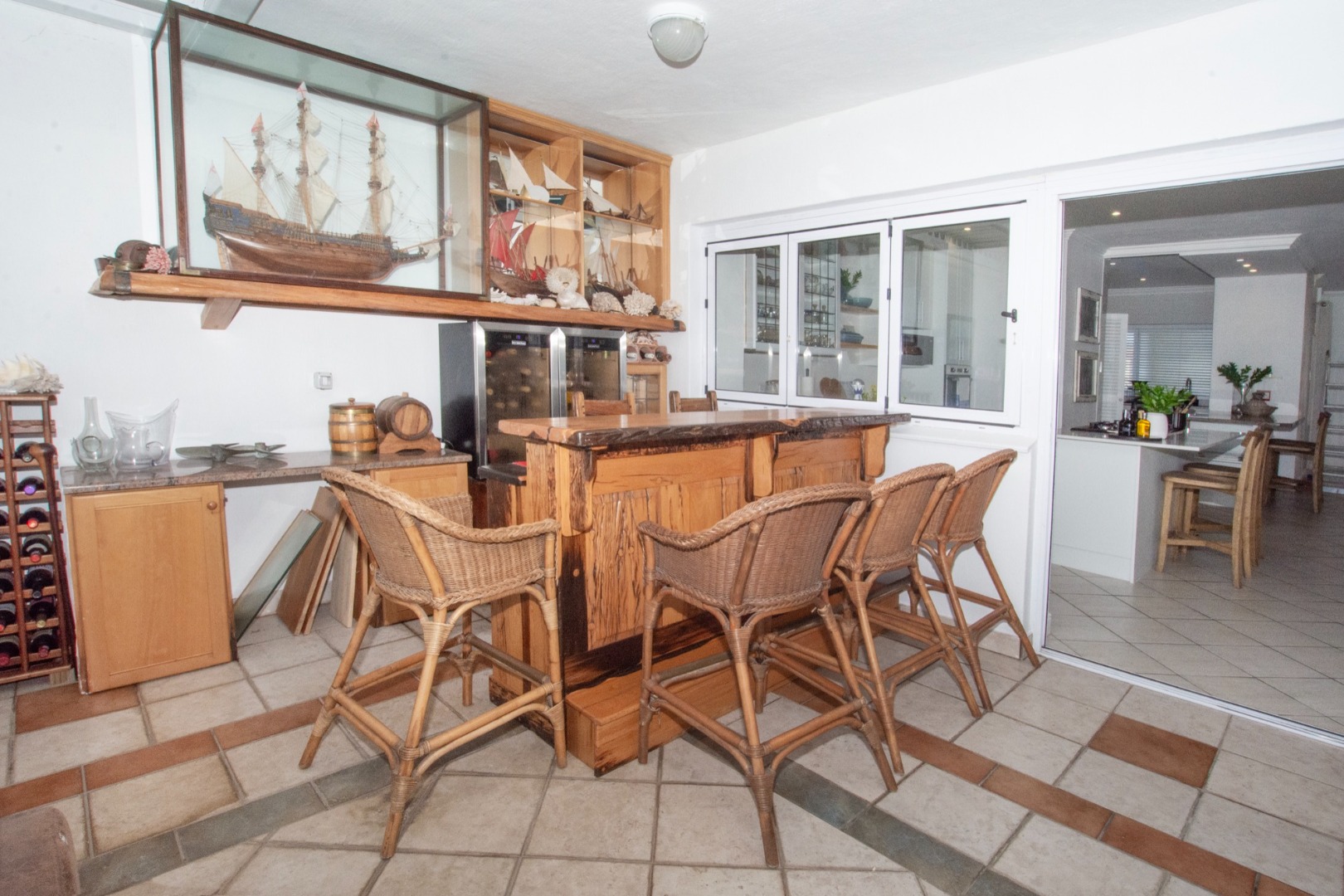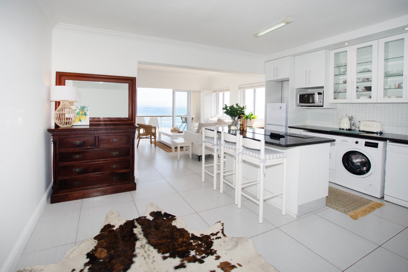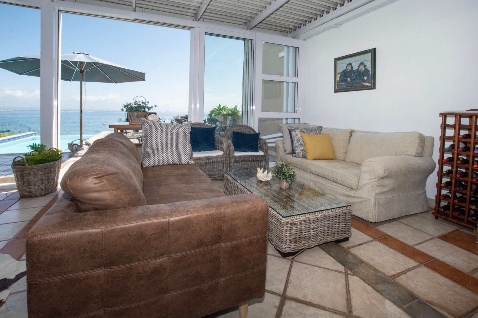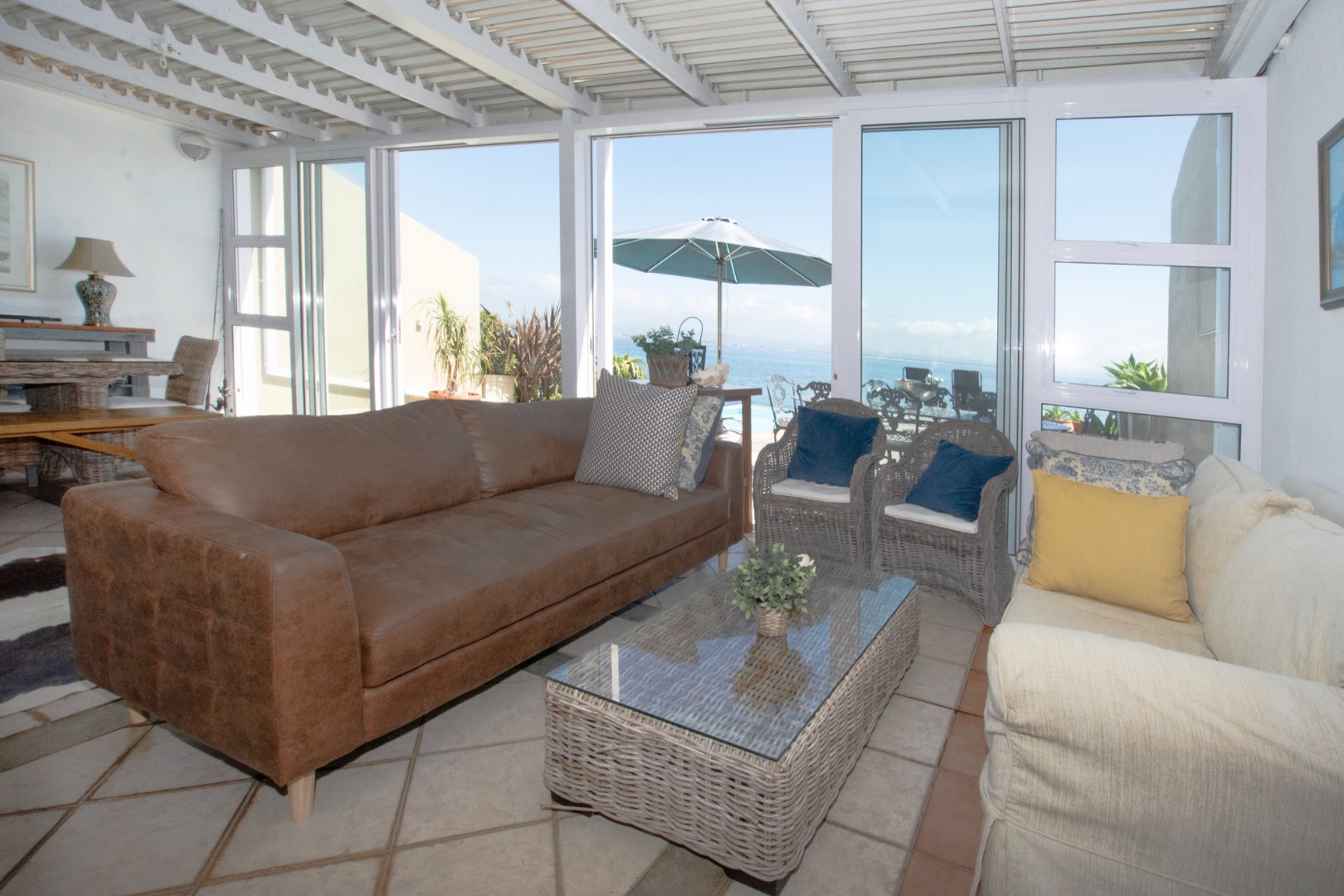 Level 2: A true entertainer’s haven, with an open-plan lounge and fireplace, designer kitchen, dining space, pantry, guest bathroom, and built-in braai. Slide open the glass doors to reveal the pool and terrace — where ocean breezes set the scene.