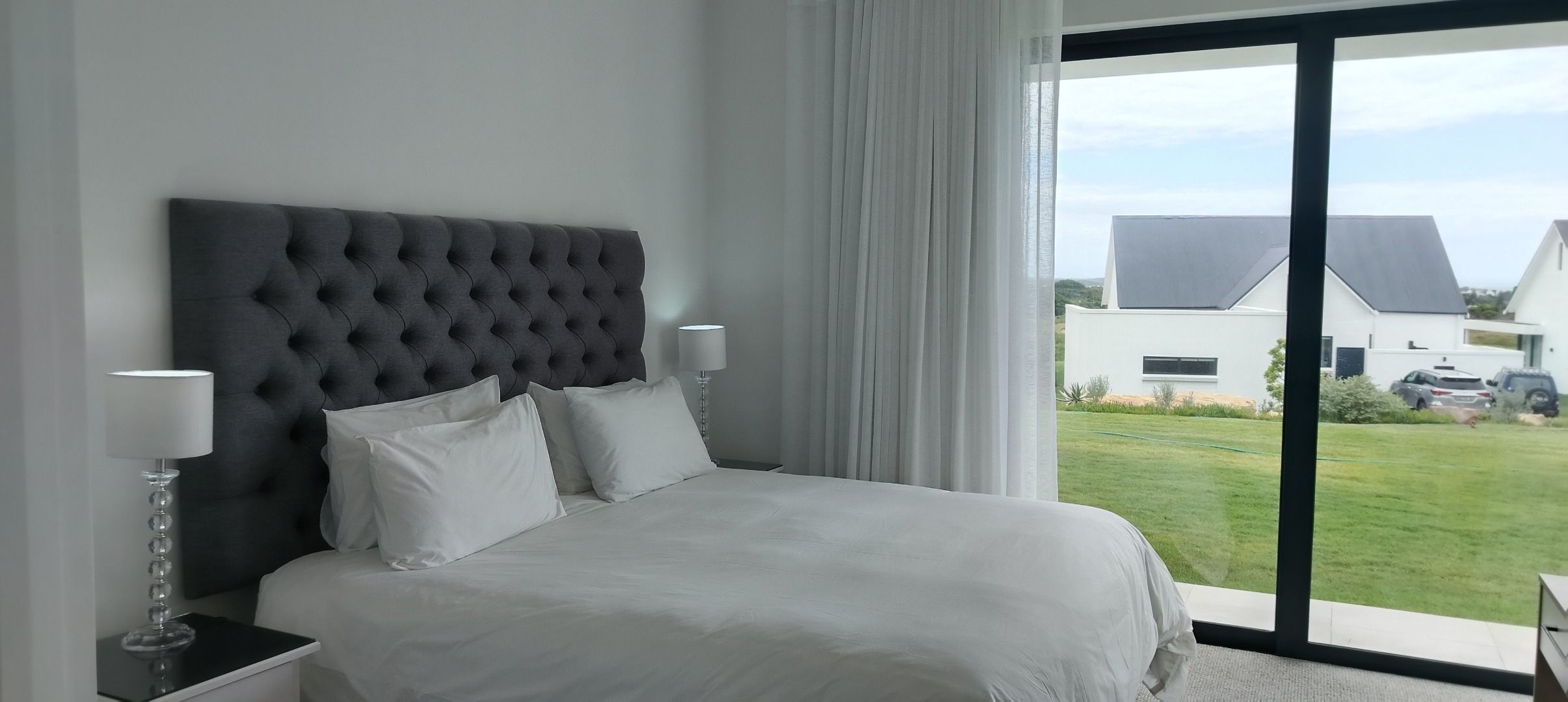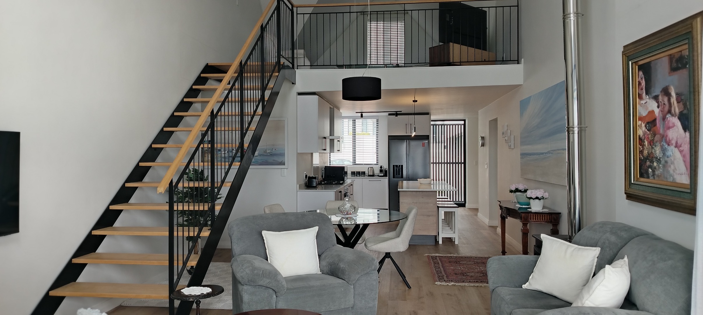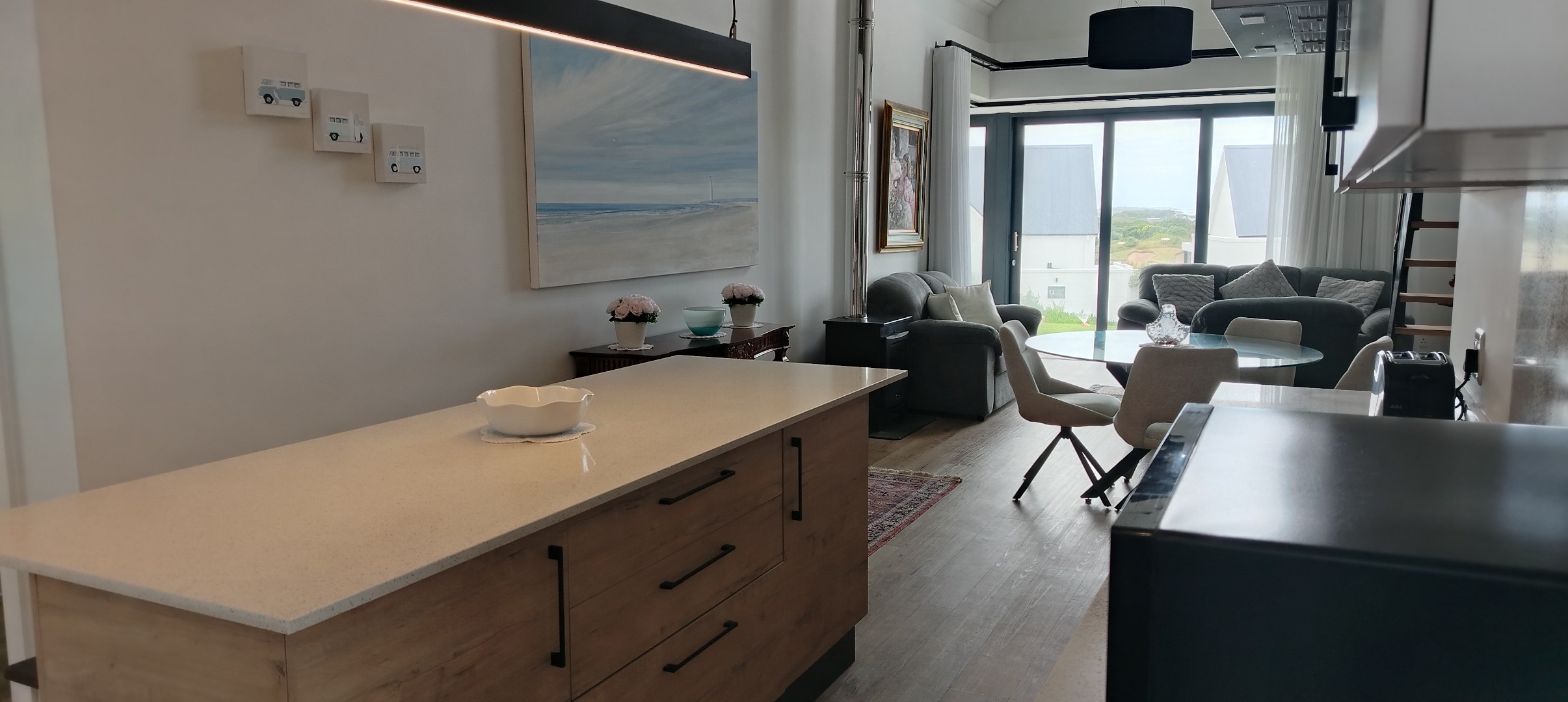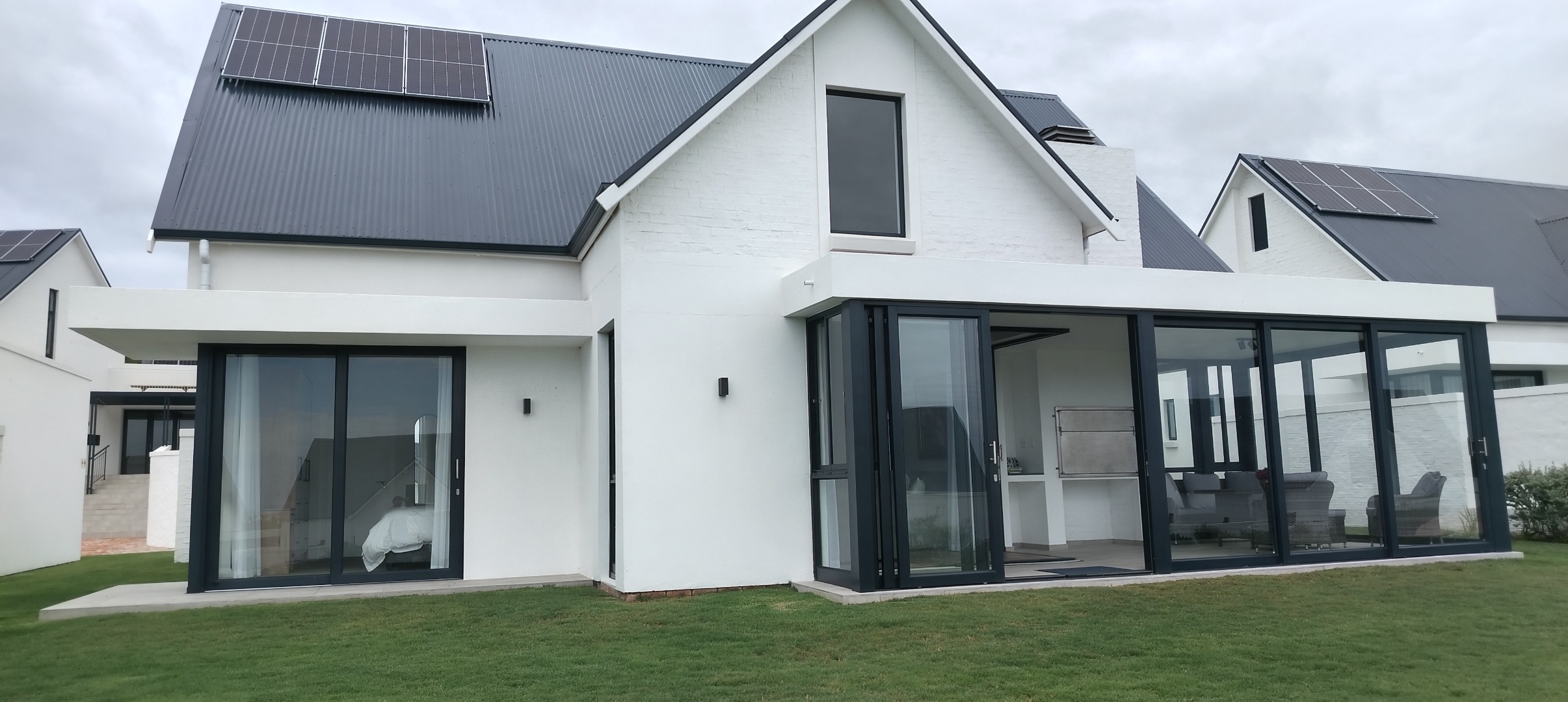 This free-standing single unit is situated inside the exclusive and secured St Francis Links Golf Estate, on an elevated ridge behind the Fairway Villas overlooking the 18th fairway. The property features three bedrooms with two bathrooms (main en-suite). The open plan kitchen leads to a dining area and lounge with a free-standing wood burning fireplace and full-width sliding doors opening to an enclosed patio with a built in braai. A second lounge/TV room on the mezzanine level. The separate scullery leads off the kitchen with an enclosed courtyard with water tank and a double automated garage gives you direct access into the house. All three bedrooms and bathrooms are on the ground floor level.